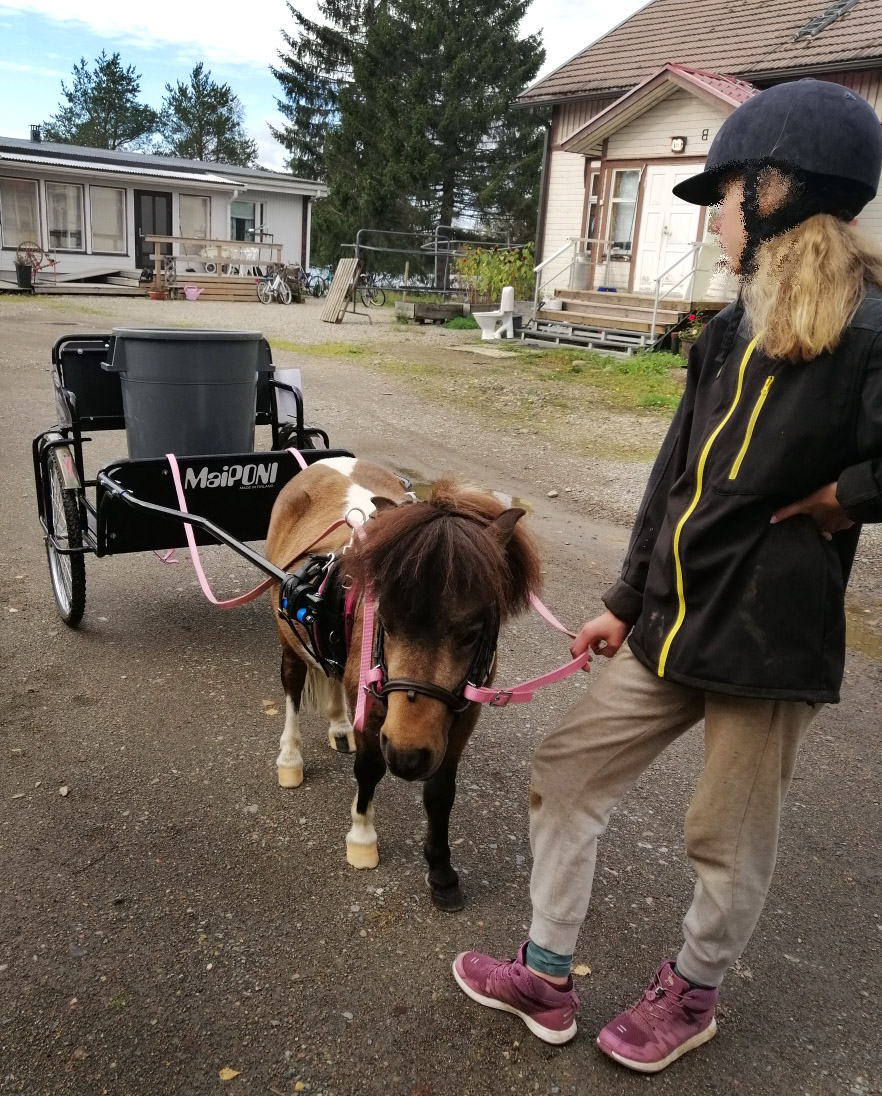 Maiponi -kärry minihevoselle Suunnittelimme ja toteutimme yhteistyössä minihevosen omistajan kanssa sopivan ja toimivan kärryn.Maiponi -minihevoskärry tilaustuotteena 1040,- + rahti. Edellinen Seuraava